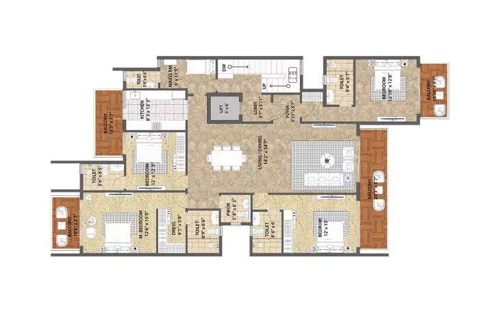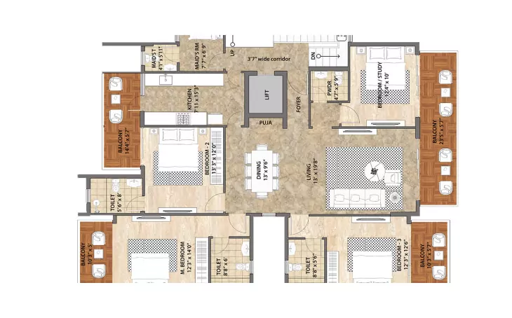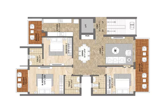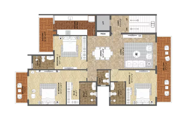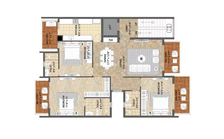 Type - AB1 3 BHK