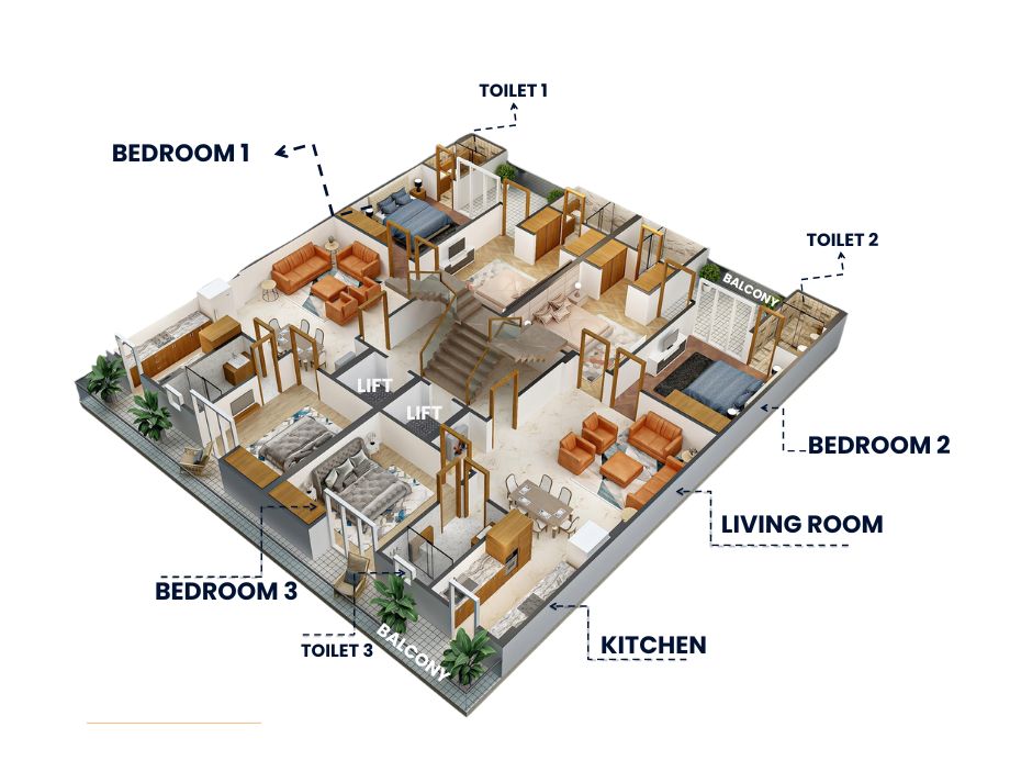 These luxuries project nearest areas to schools, restaurants, hospitals, and workplaces.