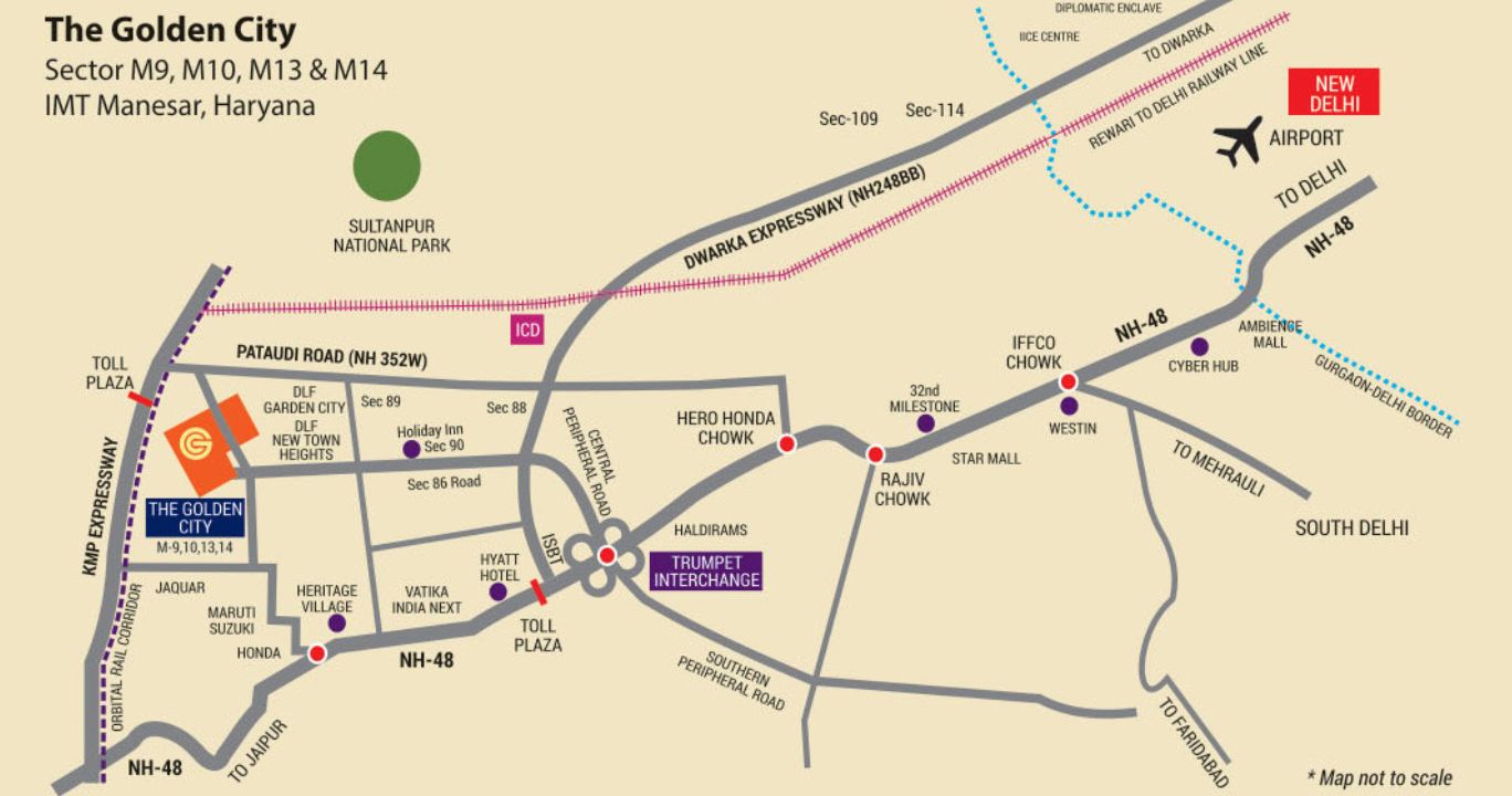 Bang On The Intersection of 3 Major Highways, KMP Expressway, NH-48 and Highway (352W).